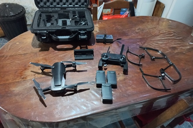 Mavic air 1 con todos los accesorios 3 baterías cargador simultáneo inteligente protector de helices muy pocos ciclos de carga exenete estado carbono maletin rígido todos los cable
